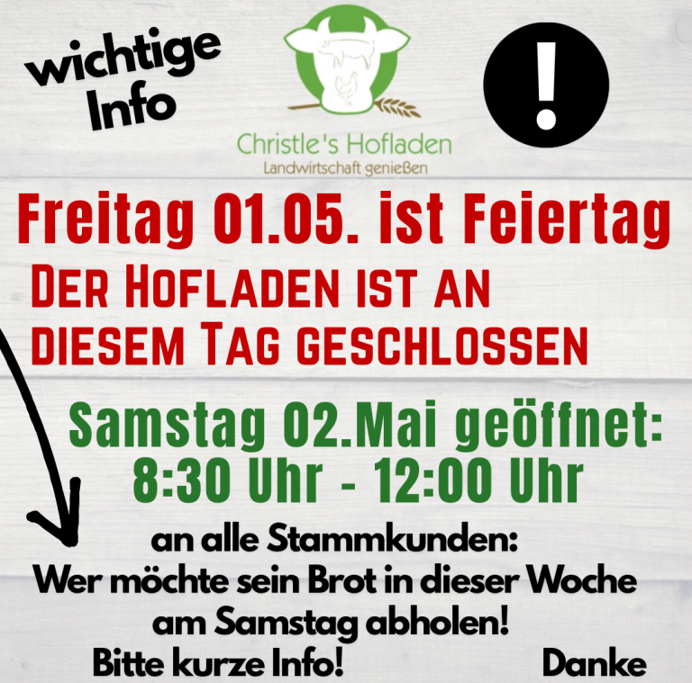 Unsere Öffnungszeiten des Hofladens: